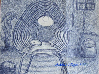 Mi silla con lampara encendida, luz que auyenta las sombras misteriosas.
